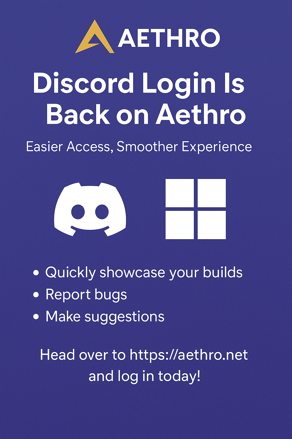 We’re excited to announce that Discord login has officially returned to the Aethro website! Whether you’re here to show off your latest Minecraft build, report a bug, or throw in a wild idea for a new server feature, logging in is now easier than ever. Alongside Microsoft login, we’ve re-enabled Discord login, so you can jump right into the community without juggling extra passwords or going through tedious setup. Why We Brought It Back: Let’s be honest — most of our community lives on Discord.