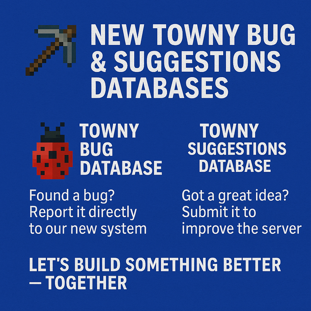 ๐ ๏ธ New Towny Bug & Suggestions Databases Are Live!