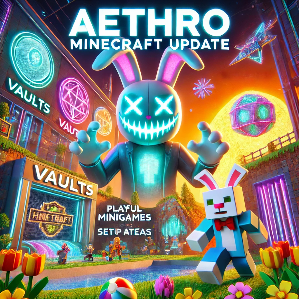 We’ve been hard at work enhancing your gaming experience! Here’s what’s new: Trade SystemUpdated to the latest version, featuring backend fixes to ensure smoother trading functionality. Vault SystemVIP Levels: Introduced proper level-based access to vaults for VIPs. Improved Handling: Items in vaults will now be moved to empty slots or dropped if there are no available slots when the row size of a vault changes. Graves UpdatesTimer Fix: Resolved an issue where graves didn’t disappear after their timer expired while the server was offline. Location Fix: Fixed a bug where saved graves shifted locations after a server restart. Backend ImprovementsSkriptz Backend: Updated for better performance and functionality. Jobs: Updated for smoother gameplay integration. Realistic Seasons UpdateThe Realistic Seasons system has been updated to bring even more immersion to your gameplay. Easter Surprise: Watch out for killer bunnies during the Easter season! They're hopping into the festivities with a bit of chaos and fun. 🐇🎉 Minigames Are Back!We’re thrilled to announce that Minigames are making a return to Aethro Minecraft! 🎉 Get ready for fun and excitement as we bring back some of your favorite games and activities. We’re committed to making Aethro Minecraft an exceptional experience. Log in and explore the improvements today! 🌟 Stay awesome, The Aethro Team