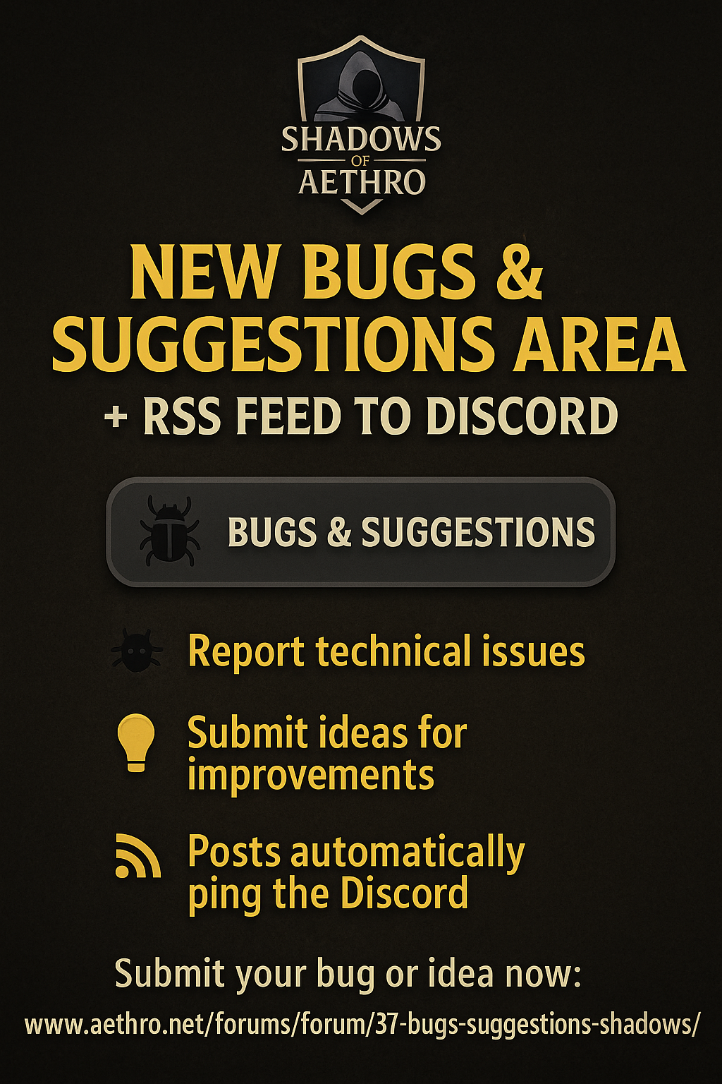 🛠 Shadows of Aethro Launches New Bugs & Suggestions Portal + RSS Feed Integration
